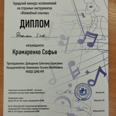На основании предложения министерства культуры Новосибирской области МБУДО ДМШ №8 включена в Национальный Реестр «Ведущие учреждения культуры России — 2017» и «Ведущие учреждения культуры России — 2018». В Реестр включаются организации и учреждения, занимающие лидирующие позиции в сфере культуры своего региона. Включение организаций в Реестр осуществляется исключительно на основании предложений государственных и муниципальных органов власти. Включение организации в Реестр тем самым означает признание соответствующим органом исполнительной власти ее лидирующей роли в развитии сферы культуры региона и России в целом.